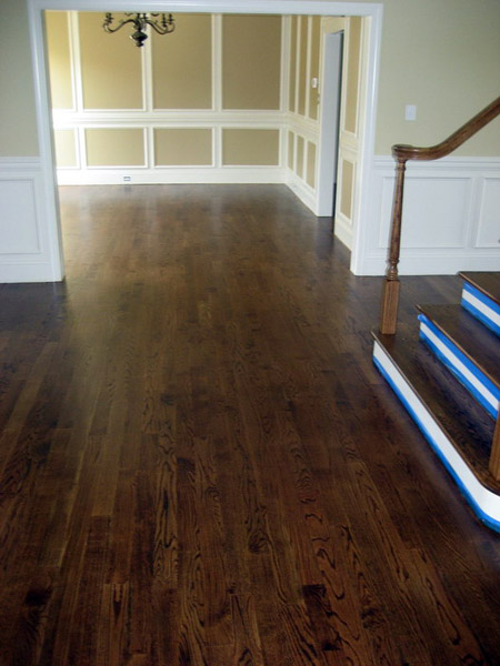 Dining Room, Wood: 3/4" x 3 1/4", Wide Red Oak, Color: Provincial, Finish: Polyurethane - Satin